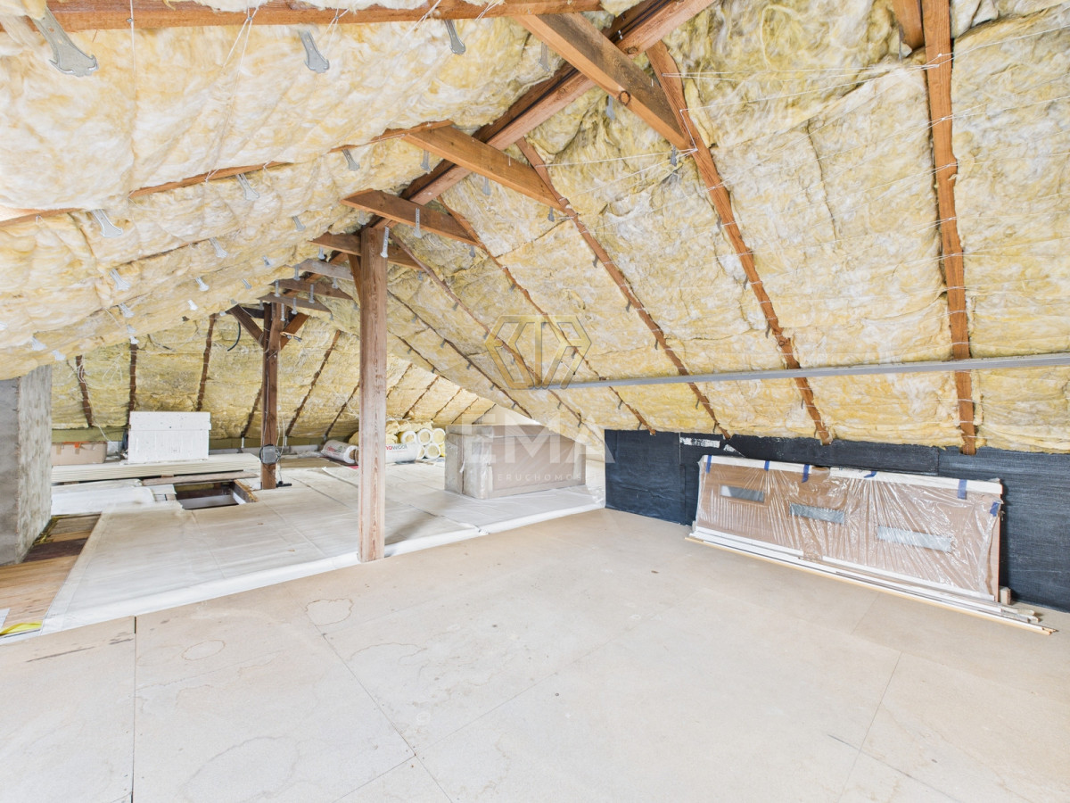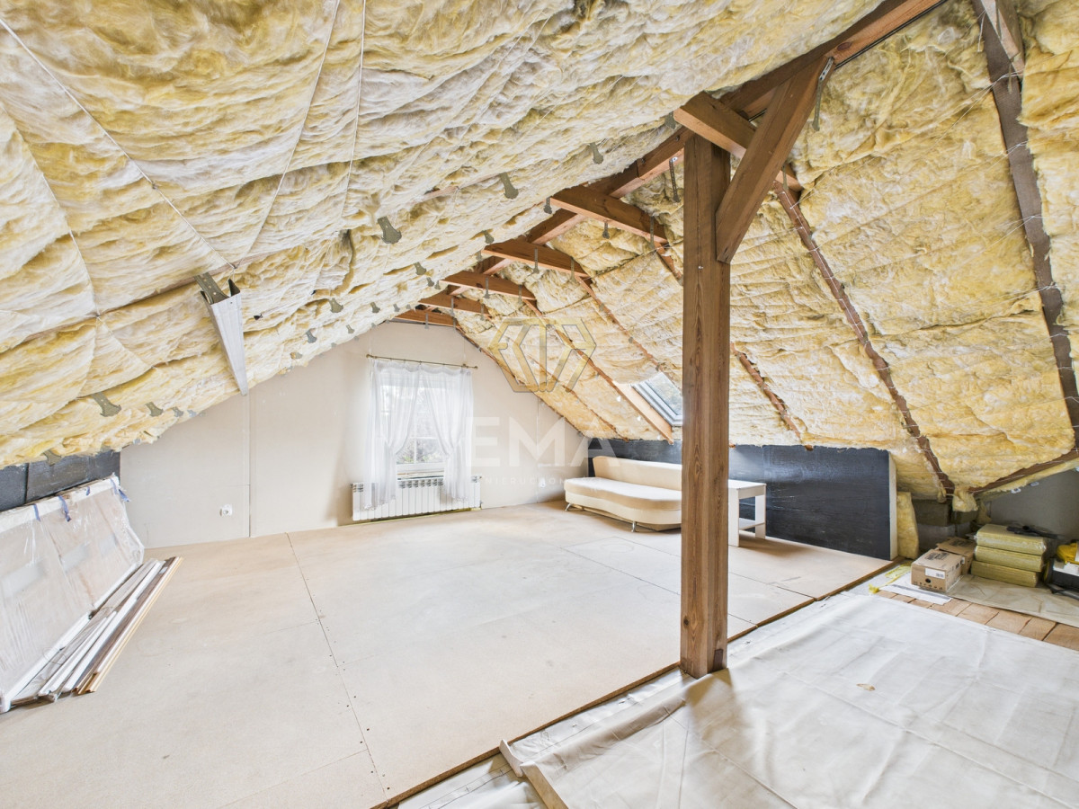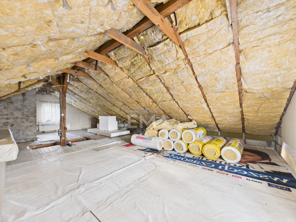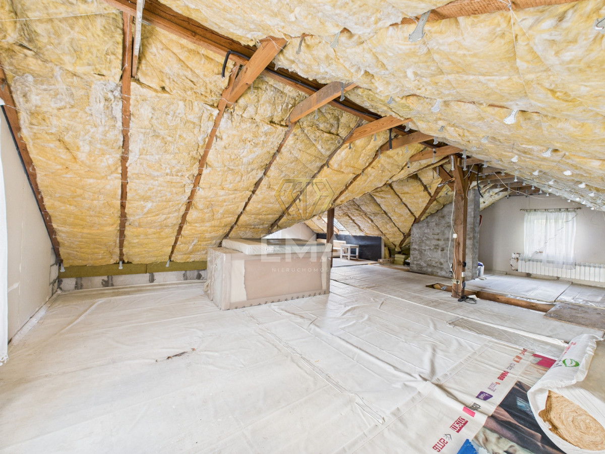 Na poddaszu czeka już komplet materiałów wykończeniowych (wełna, płyty GK, farba podkładowa), co pozwala na szybkie i ekonomiczne stworzenie dodatkowej przestrzeni mieszkalnej.