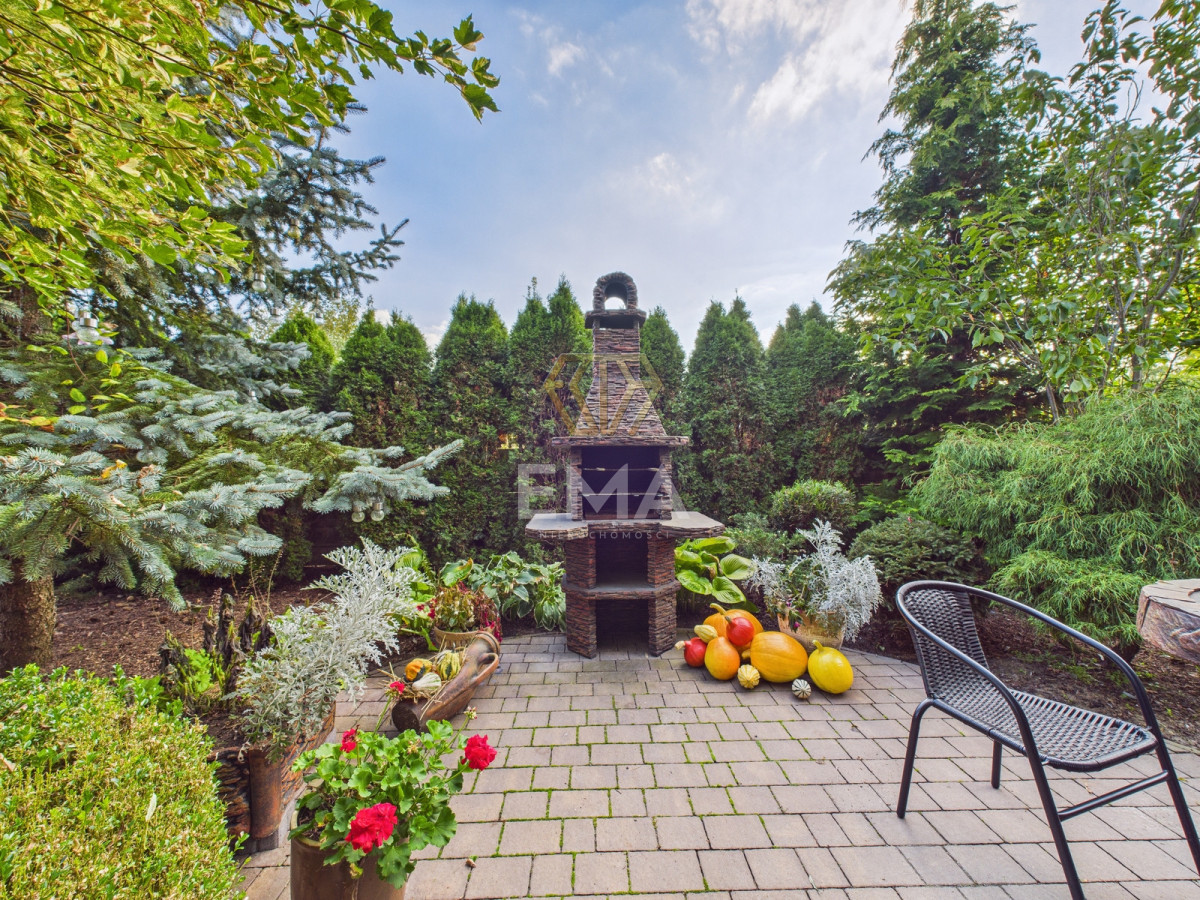 To, co wyróżnia tę nieruchomość, to nie tylko solidna konstrukcja, ale także zadbane i przemyślane otoczenie. Ogród został zaprojektowany z dbałością o każdy detal, tworząc idealną przestrzeń do wypoczynku i rekreacji. Znajdą tu Państwo harmonijną kompozycję ozdobnych krzewów, kolorowych kwiatów i starannie dobranych drzew, które zapewniają prywatność ciesząc oko przez cały rok.