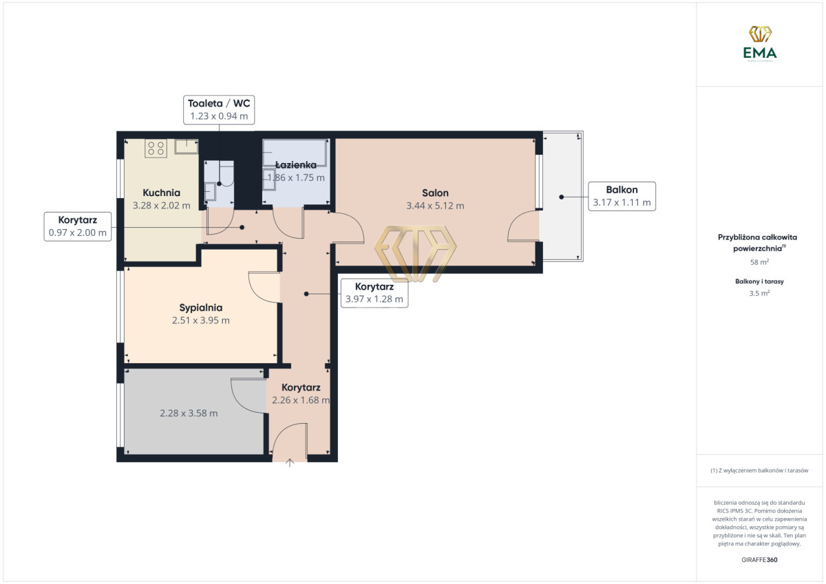 - powierzchnia: ok 59 m²,